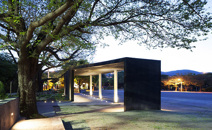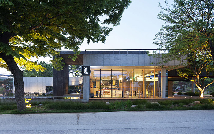 这个社区综合设施项目位于韩国北汉山山脚处的入口,整个建筑(包含餐厅,展厅,多功能大厅)除地下一层和地上两层之外,还有着一条随地势起伏,穿越树林,相当漫长,并被建筑化了的走廊,建筑师认为该走廊是通往建筑,通往宁静的通道。
